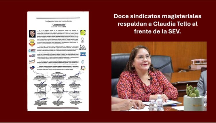 Doce sindicatos magisteriales respaldan a Claudia Tello al frente de la SEV.